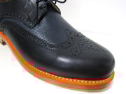 Sie wählen einfach im Outlet einen Schuh aus, der Ihnen gefällt und perfekt passt und wir notieren dann gemeinsam Ihre Sonderwünsche. Zum Beispiel ein oder mehrere spezielle Leder. Oder eine andere Farbe. Oder eine beliebige Farbkombination. Besonders beliebt sind aktuell akzent-farbige Rahmen (der sichtbare Lederstreifen zwischen Sohle und Oberschuh) und dazu passende Schuhbänder.